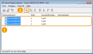 Dokumenten läggs till i Canon PageComposer.