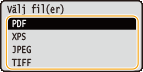 Välj vilken typ av fil som ska skrivas ut och tryck sedan på