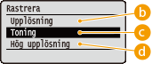 Du kan välja rastreringsmetod (intervall mellan ljusare och mörkare områden i en bild).