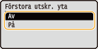 Om du väljer <På> kan delar av bilden saknas vid kanterna på papperet och papperet kan fläckas beroende på originalet.
