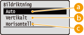 Om den angivna inställningen i <Vertikalt> eller <Horisontellt> inte överensstämmer med bildens orientering skrivs en förminskad bild ut.