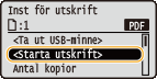 Utskriften startar. Ta bort USB-minnet från enheten när utskriften är klar. Ta bort USB-minnet.
