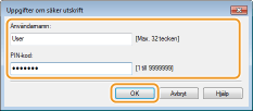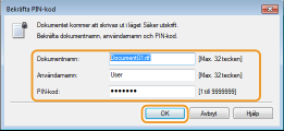 Ange [Dokumentnamn], [Användarnamn] och [PIN-kod] och klicka sedan på [OK].