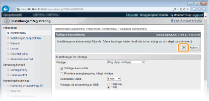 Standardinställningen för enheten är att inga användare (vanliga användare) utom administratörer får ta bort dokument. Ändra den här inställningen om du vill tillåta slutanvändare att hantera dokument.