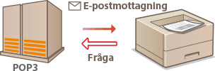 Med e-postutskrift kan du skriva ut meddelanden och bifogade JPEG- eller TIFF-filer som tagits emot från POP3-servern utan att använda en dator. E-post kan tas emot manuellt eller automatiskt i regelbundna intervall. När SMTP-protokollet används skrivs e-post ut när den skickas direkt till enheten utan e-postserver.