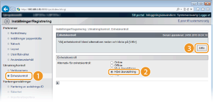 Om du försöker starta Fjärranvändargränssnittet när TLS har aktiverats kan en säkerhetsvarning visas gällande säkerhetscertifikatet. I så fall kontrollerar du att rätt webbadress har angetts i adressfältet och sedan går du vidare för att öppna fjärranvändargränssnittsskärmen. Starta Fjärranvändargränssnittet