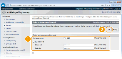 Ange upp till 24 alfanumeriska tecken för användarnamnet. [Byt lösenord]