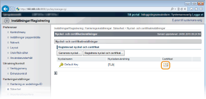 Klicka på [Nyckel- och certifikatinställningar] om du vill verifiera ett nyckelpar och på [CA-certifikatinställningar] om du vill verifiera ett CA-certifikat.