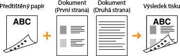 Při tisku na předtištěný papír je potřeba obrátit vložený papír vždy, když změníte jednostranný režim tisku na oboustranný a naopak. Je-li však možnost <Způsob podávání pap.> nastavena na hodnotu <Priorita tisk. str.>, otočení tiskové strany předtištěného papíru při oboustranném tisku (u zásuvky na papír stranou s logem směrem nahoru nebo u víceúčelové přihrádky směrem dolů) lze použít také při jednostranném tisku. Toto nastavení je užitečné zejména v případě, kdy často střídáte režim jednostranného a oboustranného tisku. Způsob podávání pap.