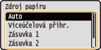 vyberte možnost <Zdroj papíru> a stiskněte tlačítko
