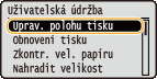 vyberte možnost <Uživatelská údržba> a stiskněte tlačítko