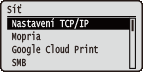 Pokud se nezobrazí zpráva <Síť>Pokud je možnost <Síť> pod <Výběr rozhraní> nastavena na <Vyp>, <Síť> se v nabídce nastavení nezobrazí. Výběr rozhraní