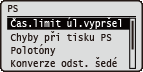 Všechna nastavení týkající se řídicích příkazů PS jsou uvedena s krátkým popisem. Výchozí nastavení jsou označena křížkem (