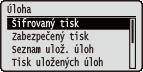 ( ) na ovládacím panelu, zobrazí se nabídka Úloha. Pokud je zařízení offline, můžete zadat nastavení popsaná níže. |