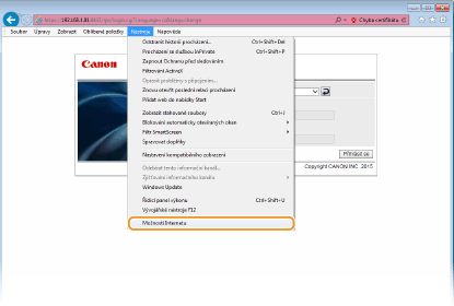 Do pole adresy zadejte „https://<IP adresa zařízení>/“ a stiskněte klávesu [ENTER].