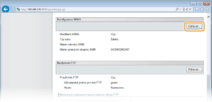 Klikněte na tlačítko [Editovat] v části [Konfigurace WINS].