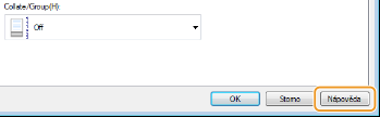 Obrazovku nápovědy zobrazíte kliknutím na možnost [Help] (Nápověda) na obrazovce ovladače tiskárny. Na této obrazovce najdete podrobné popisy, které nejsou uvedené v dokumentu Uživatelská příručka.
