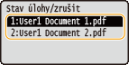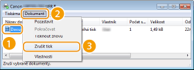 Zrušení pomocí Vzdáleného URTisk lze zrušit ze stránky [Stav úlohy] ve Vzdáleném UR: Kontrola aktuálního stavu tištěných dokumentů