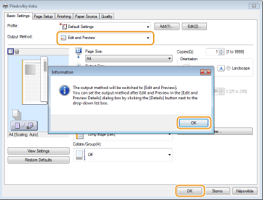 Vyberte možnost [Edit and Preview] (Úprava a náhled) v nabídce [Output Method] (Způsob výstupu).