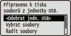 Pokud složka na paměťovém zařízení USB obsahuje mnoho souborů, bude načítání obrazových souborů k tisku trvat poměrně dlouho. Nepotřebné soubory můžete s využitím počítače z paměťového zařízení USB odstranit nebo je přesunout do jiné složky.