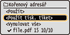 Vyberte možnost <Použít tisk. tiket> a stiskněte tlačítko .