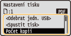 Zadejte počet kopií od 1 do 9999. Počet zadejte pomocí číselných tlačítek a stiskněte