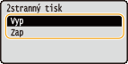 Vyberte, zda chcete tisknout na obě strany papíru. Pomocí tlačítek
