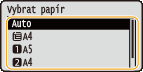 Vyberte zdroj papíru, v němž je již papír umístěn. Pomocí tlačítek