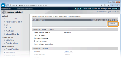 Zadejte heslo správce systému do pole [Aktuální heslo správce systému].