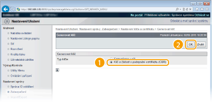 Vyberte možnost [Klíč a žádost o podepsání certifikátu (CSR)] a klikněte na tlačítko [OK].