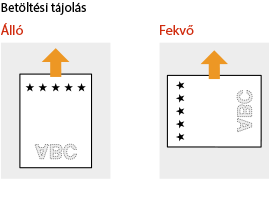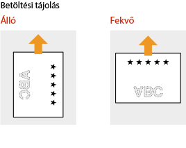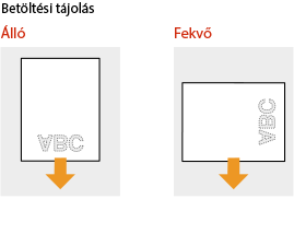 Ez a rész elsősorban az előnyomott papír helyes oldallal és tájolással történő behelyezésével foglalkozik. A papírlapok papírfiókba vagy többcélú tálcába történő behelyezésének általános eljárását a következő részben olvashatja.