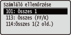 <101: Összes 1>, <113: Összes (FF/K)>, vagy <114:Összes 1(2 old.)>