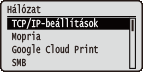 Ha a <Hálózat> beállítás nem jelenik megHa az <Illesztőfel. kivál.> menü <Hálózat> eleme <Ki> értékre van állítva, akkor a <Hálózat> lehetőség nem jelenik meg a Beállítás menüben. Illesztőfel. kivál.