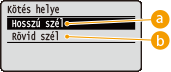 Ha emblémával előnyomott papírt használAmennyiben az <Alternatív módszer> <Be> értékre van állítva, és az utolsó oldal egyoldalas nyomtatási módban készül el, akkor az utolsó oldal tájolása vagy nyomtatott oldala eltérhet a többi oldalétól. Ilyen esetben állítsa az <Alternatív módszer> beállítást <Ki> értékre.