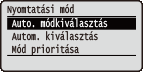 A készülék akkor lép automatikus kiválasztási módba, ha az <Autom. kiválasztás> értéket választotta az <Auto. módkiválasztás> beállításban. A készülék automatikusan megkülönbözteti a számítógépről küldött adatokat, és kiválasztja a nyomtatási módot. Ezt a nyomtatási módot akkor használja, ha alkalmazásból nyomtat.
