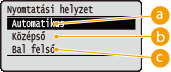 Adja meg az <Automatikus> értéket vagy a pozíciót