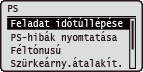 Rövid leírás kíséretében ismertetjük a PS vezérlőparancsok használata esetén elérhető beállításokat. Az alapértelmezett beállítások mellett a (
