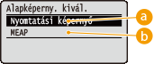Rövid leírás kíséretében ismertetjük a MEAP funkció főképernyőjén elérhető beállításokat. Az alapértelmezett beállítások mellett a () jelzés látható.