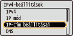 Válassza ki a <IP-cím beállításai> lehetőséget, és nyomja meg az