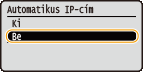 Válassza ki a <Be> lehetőséget, és nyomja meg az