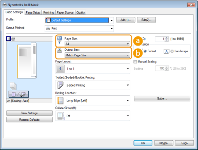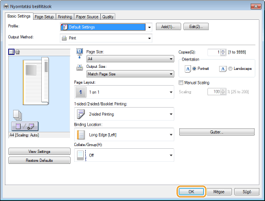 A lapelrendezés, a kötési pozíció stb. könnyen, intuitívan beállítható az előnézeti képen. A további tudnivalókért kattintson a nyomtató-illesztőprogram [Help] (Súgó) gombjára.