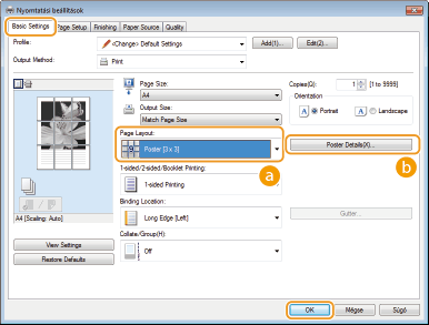 Ha a kétoldalas nyomtatás engedélyezve van, nem lehet poszterméretet választani. Válassza az [1-sided Printing] lehetőséget az [1-sided/2-sided/Booklet Printing] beállításban, majd válasszon egy poszterméretet.