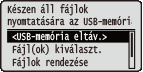 Ne használjon nem szabványos USB-memóriaeszközöket. Előfordulhat, hogy egyes USB-memóriaeszközökön tárolt fájlok nem nyomtathatók megfelelően.