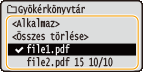Ha az 1. lépésben a képernyőn kiválasztja a <Fájlok rendezése> beállítást, akkor a nyomtatandó fájl kiválasztásakor módosíthatja a fájlok megjelenítési sorrendjét.