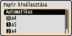 Ez a beállítás nem használható, ha az <Automatikus> beállítást adta meg a <Papír kiválasztása> menüpontban.