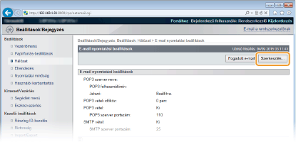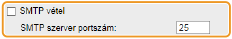 A jelölőnégyzet bejelölésével engedélyezi az SMTP protokoll használatával továbbított e-mailek kinyomtatását. Ezt a beállítást a kezelőpanel beállítás menüjének <SMTP adatfogadás> menüpontjában is megadhatja (