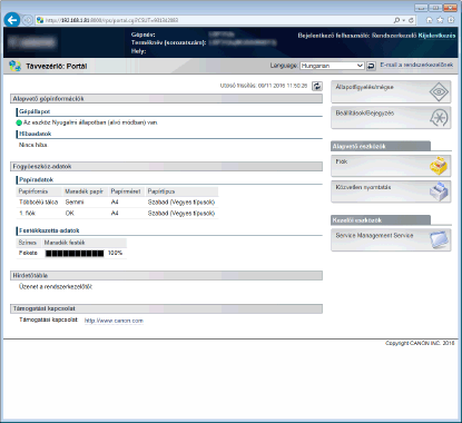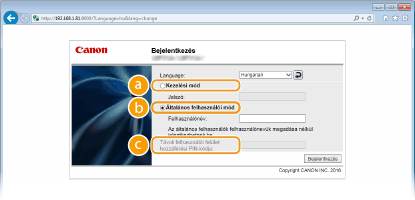 A Távoli felhasználói felületen minden műveletet és beállítást alkalmazhat. Adja meg a rendszerkezelői jelszót a [Jelszó] mezőben.