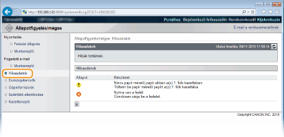 Tegye meg a készülék képernyőjén megjelenő üzenetnek megfelelő lépéseket. Ha hibaüzenet jelenik meg