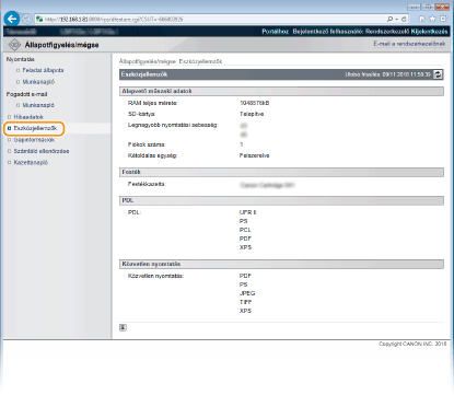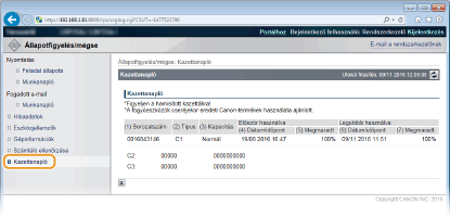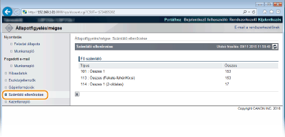 A beállítási listaként és jelentésként kinyomtatott dokumentumok közül legfeljebb 16 előzménye jelenik meg (behelyezett SD-kártya esetén legfeljebb 128 dokumentum).