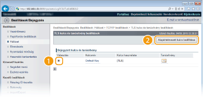 Ha a TLS a [Távvezérlő-beállítások] vagy az [IPP nyomtatási beállítások] pontban már engedélyezve van, akkor az [Alapértelmezett kulcs beállításai] nem jelenik meg. A használni kívánt kulcs módosításáról tájékozódjon a 6. lépésben, majd törölje a [TLS használata] jelölőnégyzet bejelölését a [Távvezérlő-beállítások] vagy az [IPP nyomtatási beállítások] pontban.